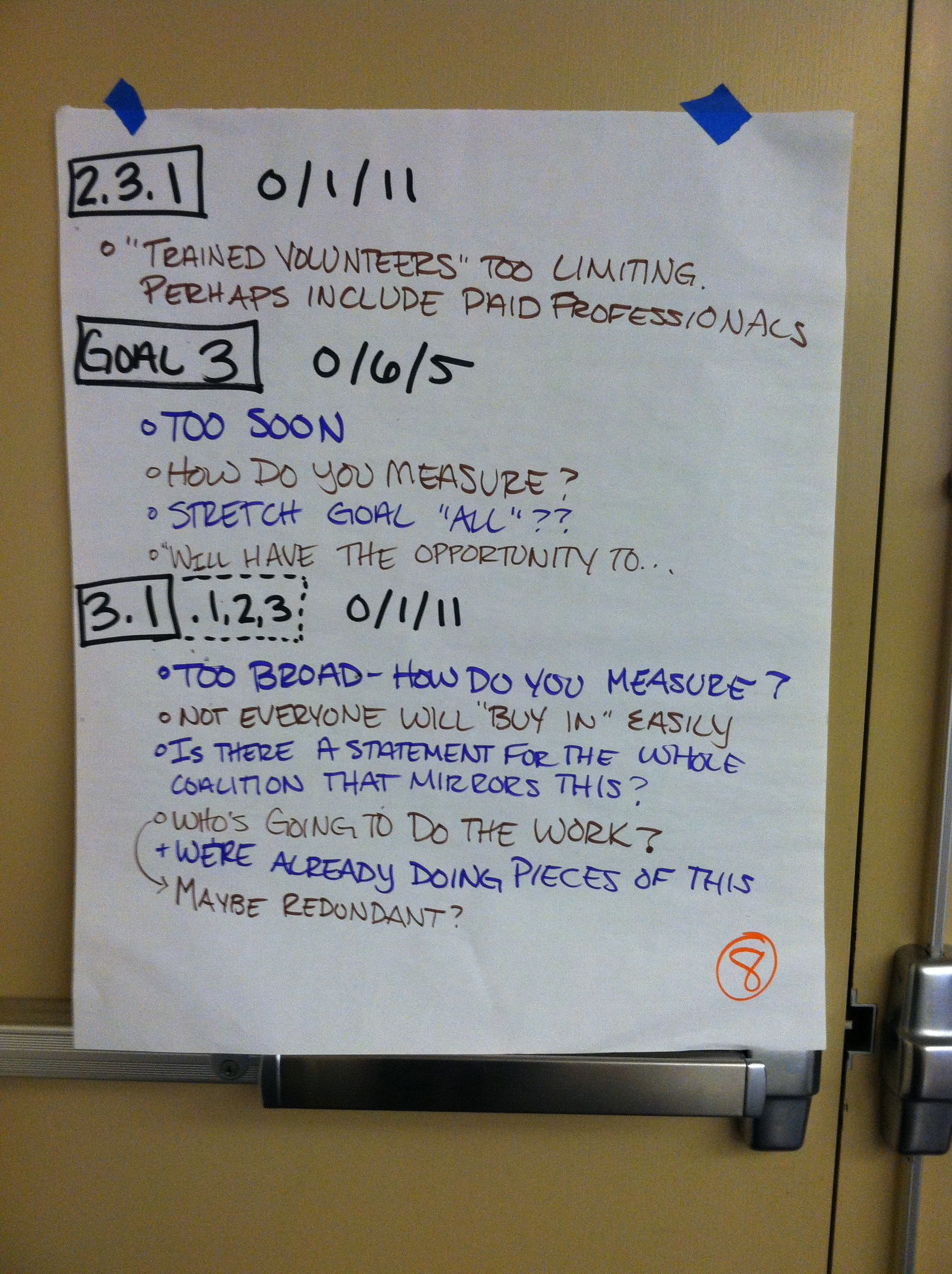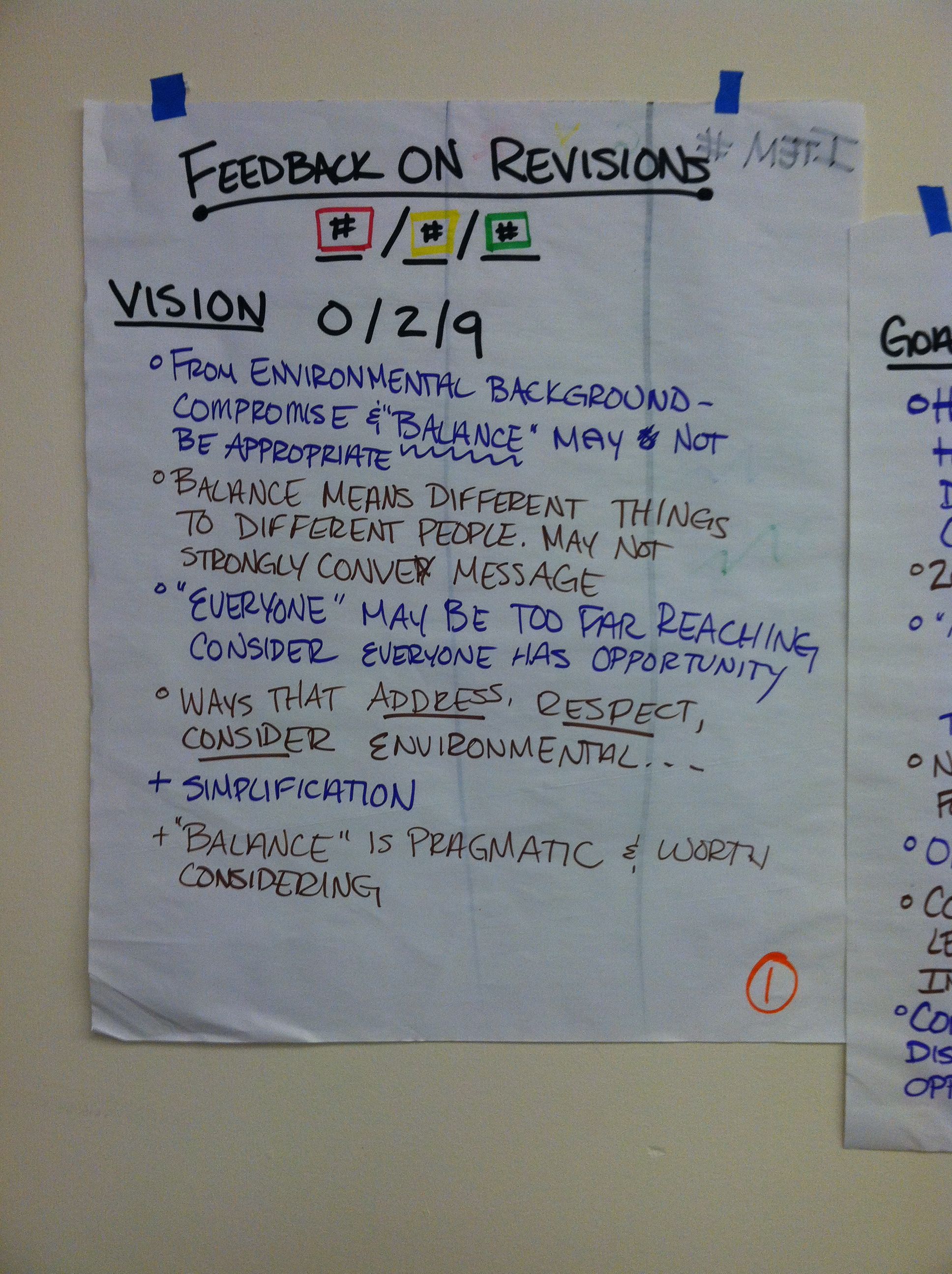 Ultimately, things went really, really well. The group was incredibly appreciative of my work and impressed at how quickly and neatly I recorded ideas. I took pictures of the charts and emailed them to the group’s leaders to be transcribed. On my way out, an older community member and I started talking and I ended up giving her a ride home. For all of my “environmental shortcomings,” I was happy to at least carpool for half of the trip for the night’s work.
